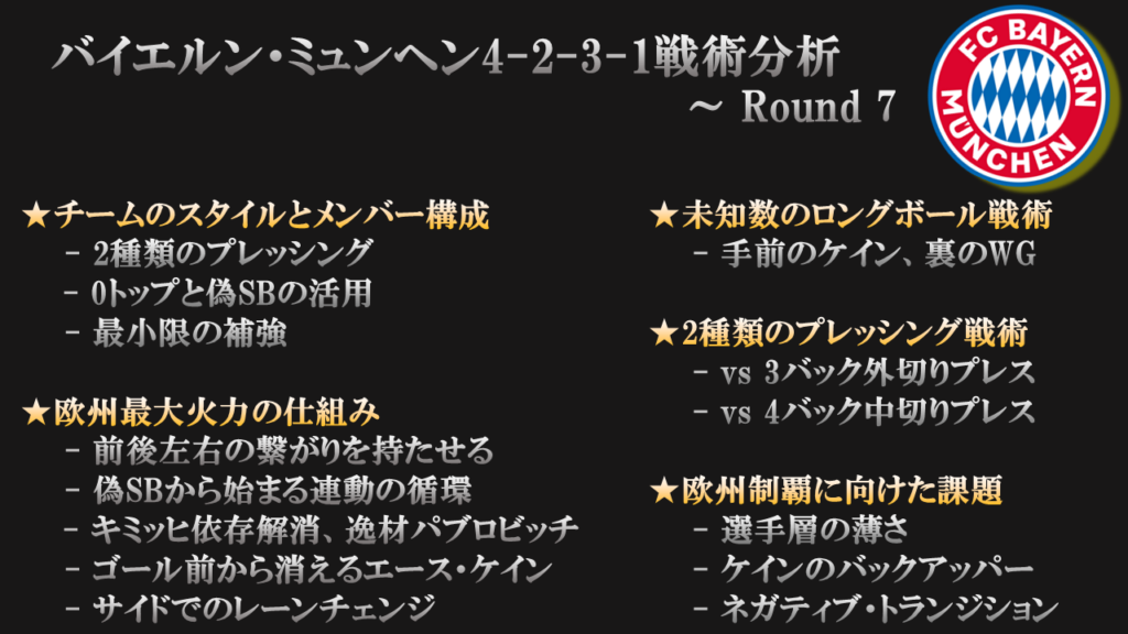 今回の動画では、ここまで1試合平均3.9得点と、5大リーグ最大の火力を誇る、バイエルン・ミュンヘンの戦術に迫る。